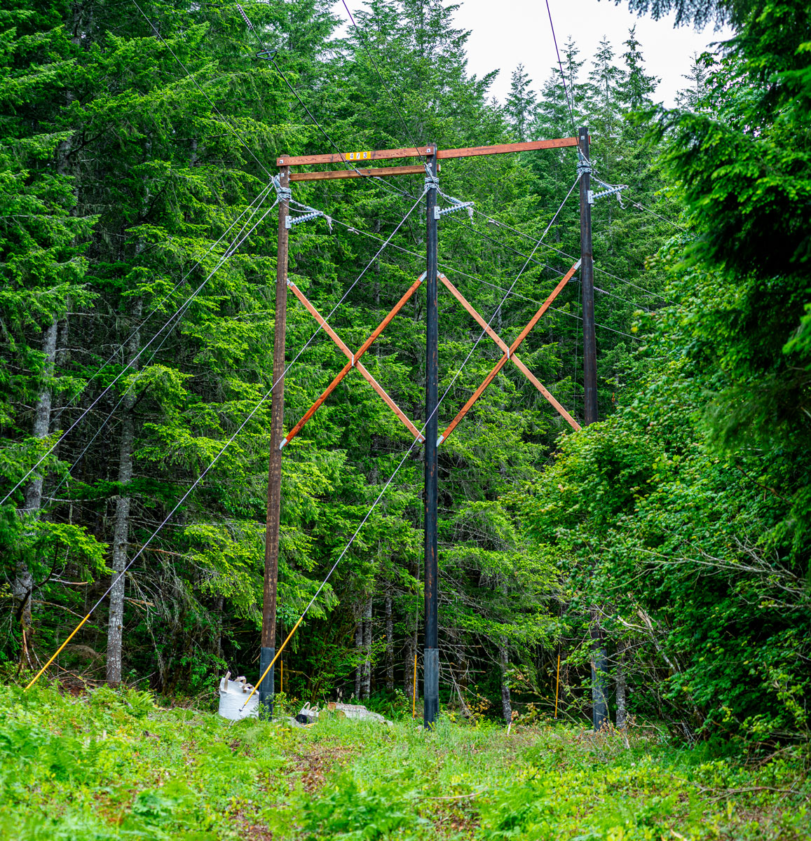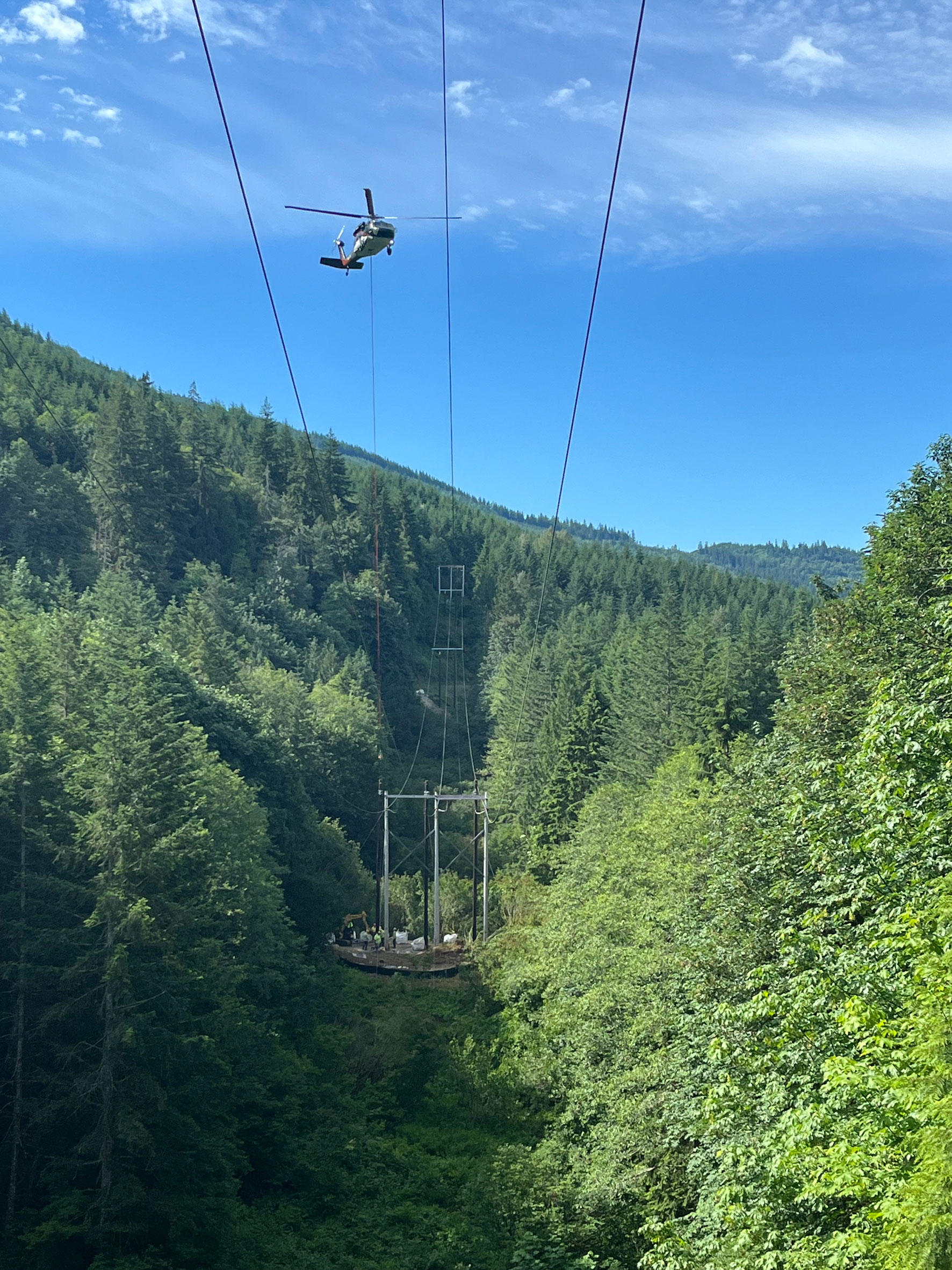 The most demanding aspect of the project involved three structures that were almost completely inaccessible by ground. For these, we employed helicopter assistance to fly in a total of nine poles.